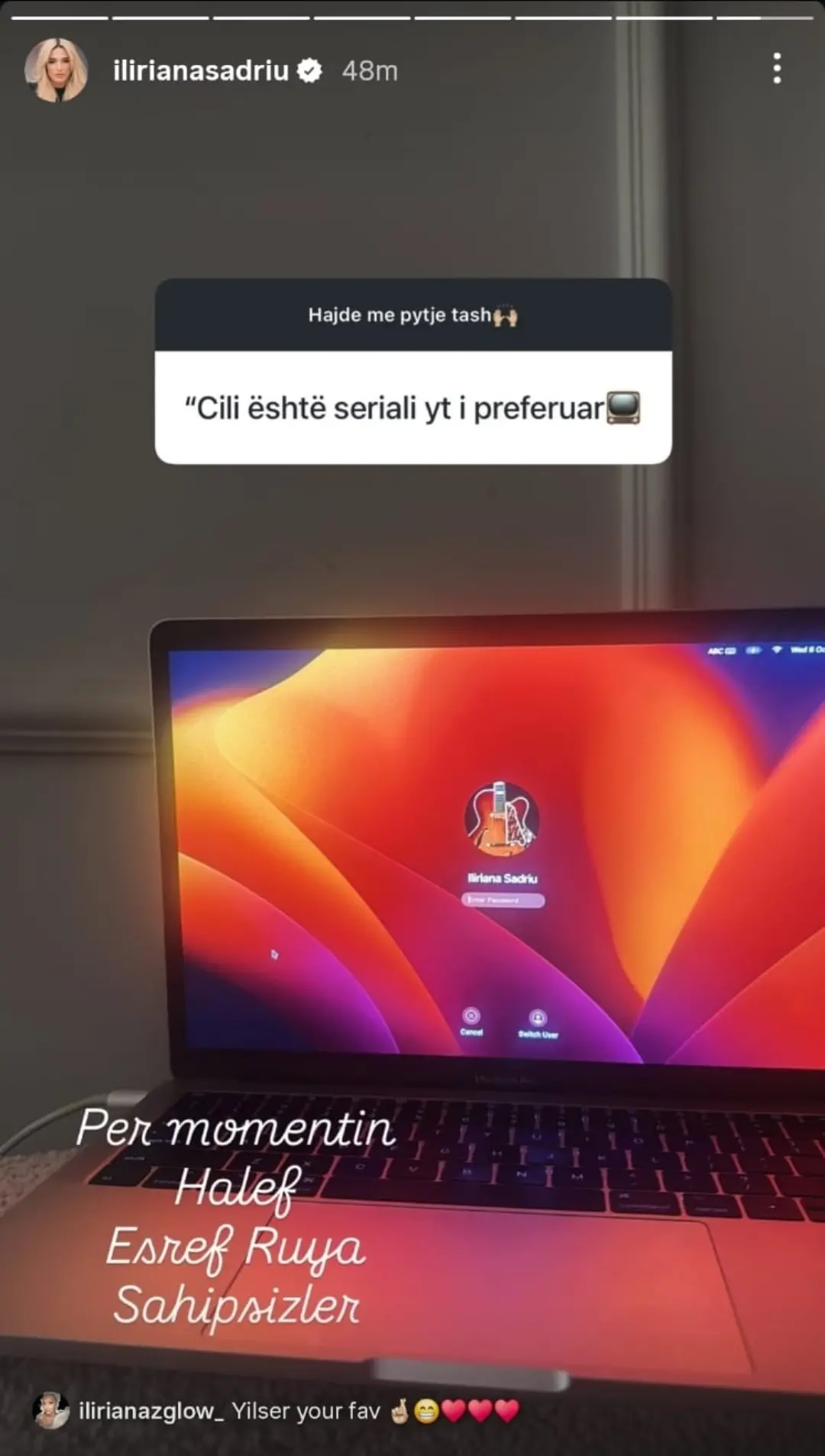 Këngëtarja e njohur Iliriana Sadriu, e cila ka arritur famë si ish-gjysmëfinaliste e Big Brother VIP Kosova 2, ka ndarë me ndjekësit e saj tri rekomandime nga serialet më të fundit turke që po bëjnë bujë në rrjete sociale. Ajo ka një pasion të veçantë për prodhimet televizive turke, dhe këto tri projekte janë ato që e kanë tërhequr më së shumti vëmendjen e saj.